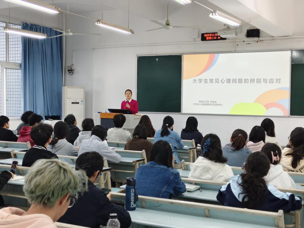 2025年11月4日中午,工商管理学院在兰花湖片区广智楼20302教室顺利举办2025-2026学年第一学期心理委员专业胜任力提升培训会。本次培训以“常见心理问题识别及危机干预”为主题,特邀重庆工商大学心理健康教育与咨询中心主任胡佳怡老师担任主讲,学院2025级全体心理委员及心理工作站干事参与学习。活动旨在提升心理委员的专业素养与实际工作能力,进一步夯实学院心理健康教育工作的基础。