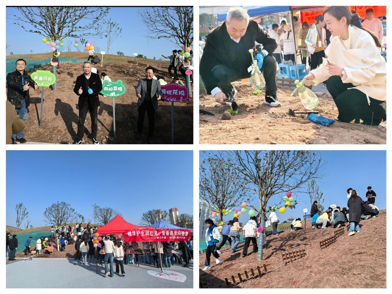 在活动尾声,学校党委常委、副校长李国军和茶管会主任丁广龙、学生处处长申卫东共同为种植区域插上“解忧花坞”“向阳菜畦”“青囊药苑”标志牌,体现了学校对心理健康教育与劳动育人理念的高度重视。李国军副校长强调:“让青春在呵护生命的过程中绽放光彩,是教育应有的温度。这片园地将持续见证同学们的成长与担当。”